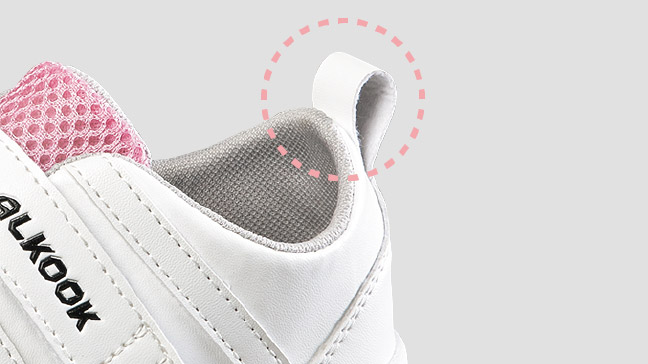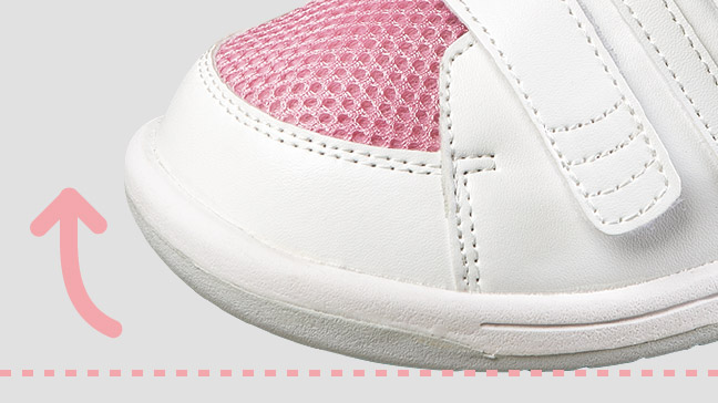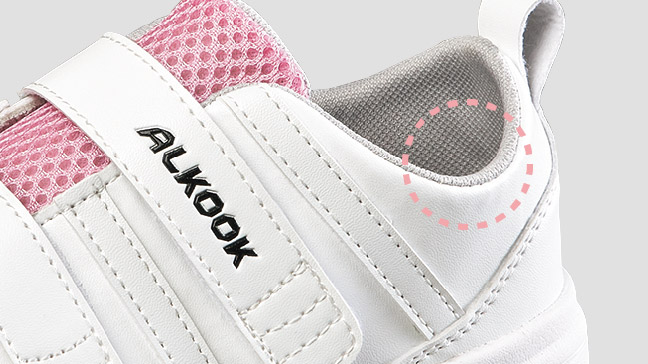 大きめの装具でも入りやすく、ハイト設計で甲部に余裕があります。