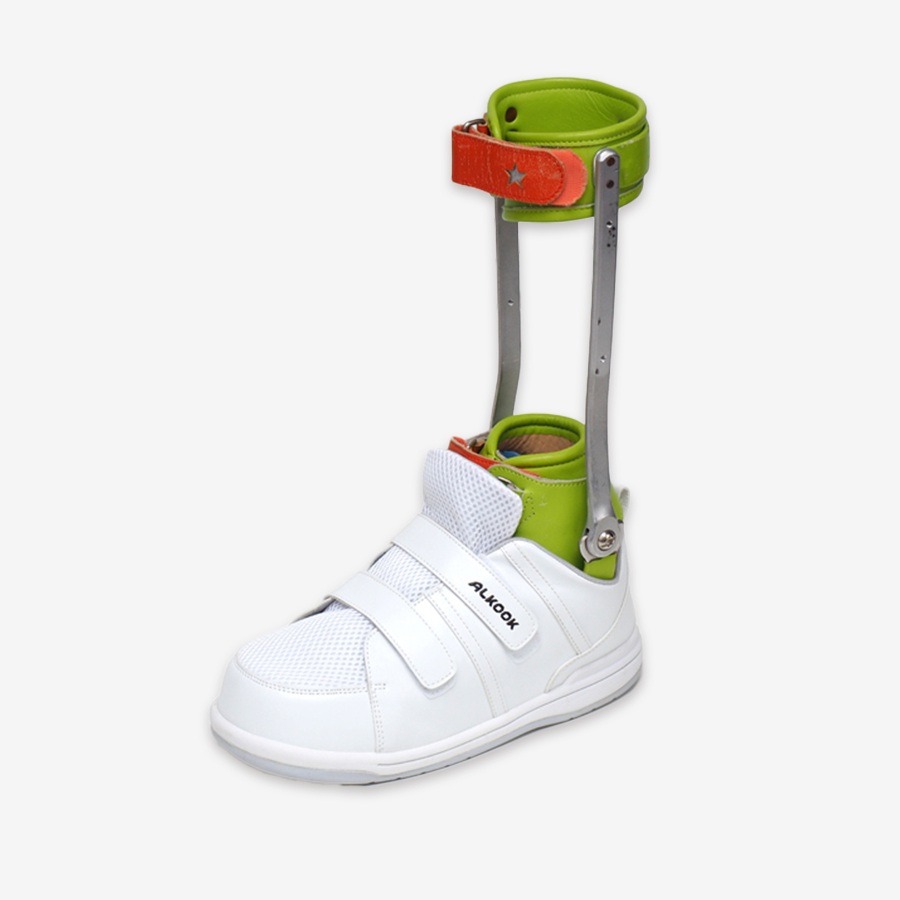 装具用の靴です。両側金属支柱付短下肢装具の上から履けるシューズです。