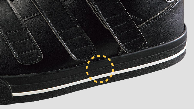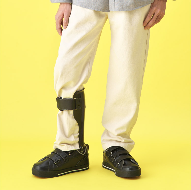 装具が入りやすいワイド設計!土ふまず部もワイドで、装具に最適な形状です。