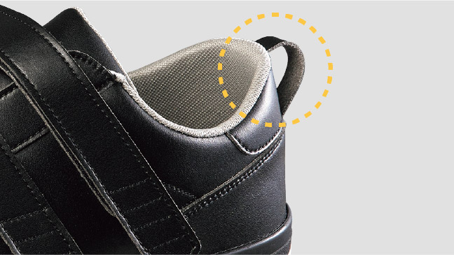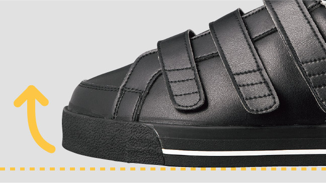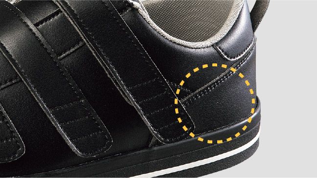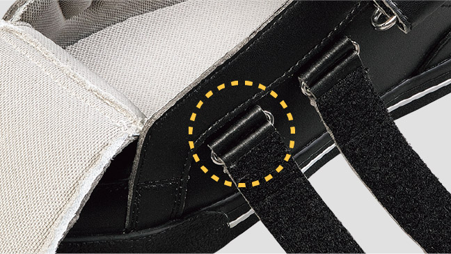 大きめの装具でも入りやすく、ハイト設計で甲部に余裕があります。