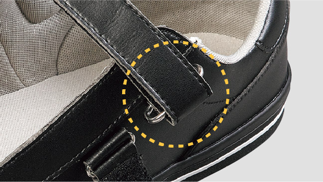 見た目も機能も装具に合わせた工夫が満載です。また、装具と言っても千差万別ですので、なるべく多くの装具に合うように、装具用シューズを設計しました。